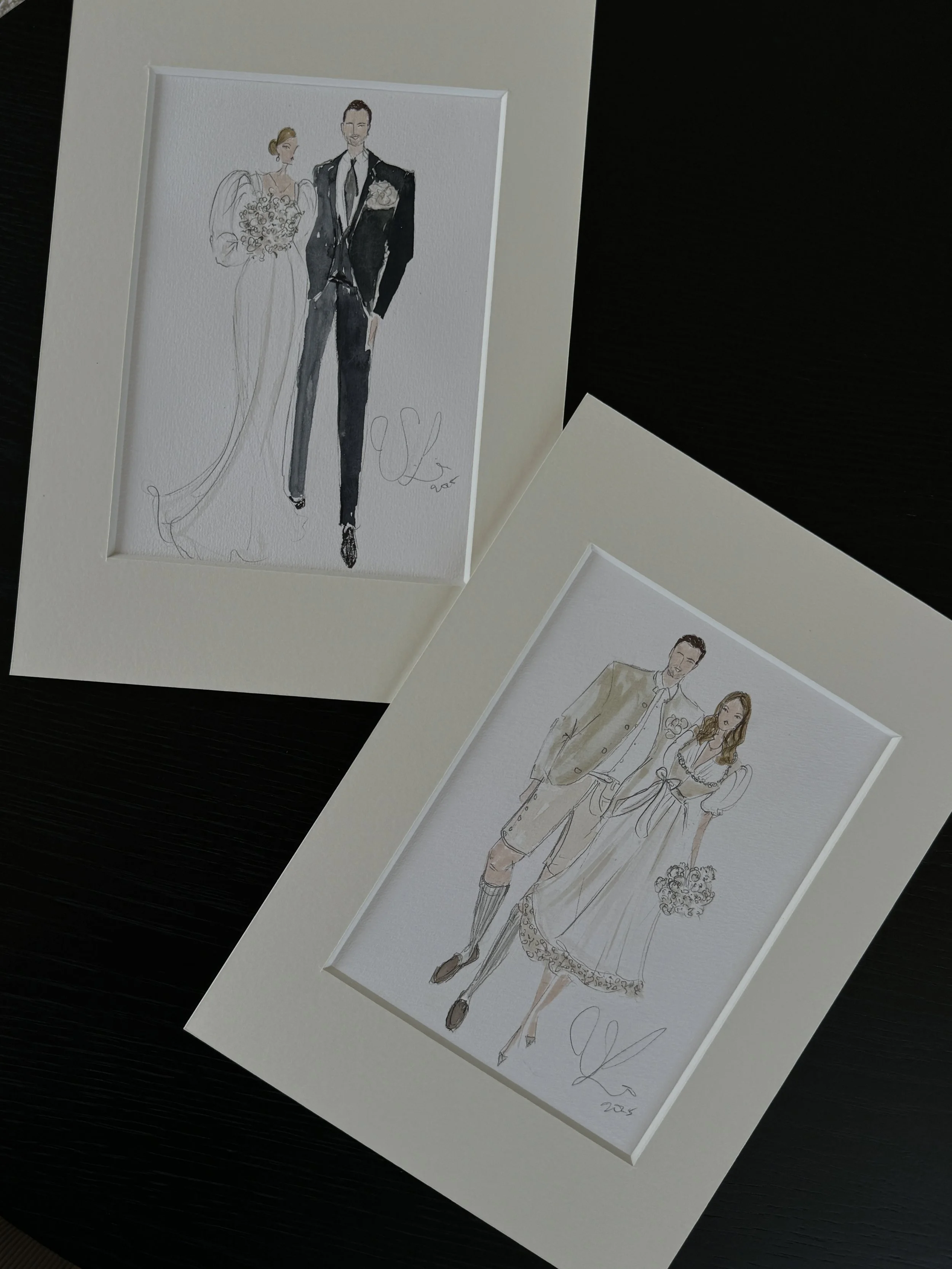 Bespoke, hand-drawn illustrations that bring your individuality to life - one silhouette at a time. Inspired by the art of fashion, each illustration captures the grace, movement, and detail of your look, with a refined, minimalist finish. No background - just you and your style in the spotlight.